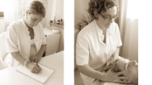 Nous sommes toutes les deux issues d’un cursus à temps plein comprenant 6 années d’études au sein de l’école CEESO Lyon que nous avons poursuivies par des formations spécifiques sur la prise en charge des femmes enceintes et des nourrissons.